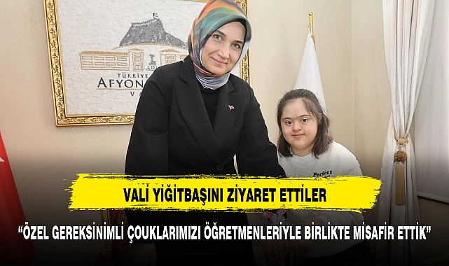Afyonkarahisar Valisi Doç. Dr. Kübra Güran Yiğitbaşı, "Akarçay Özel Eğitim Merkezi Kurucu Genel Müdürü Nalan Kaplan ve dünyamızı güzelleştiren özel gereksinimli çocuklarımız Şevval Çelik ve Ramazan Sert’i öğretmenleriyle birlikte ağırladı.