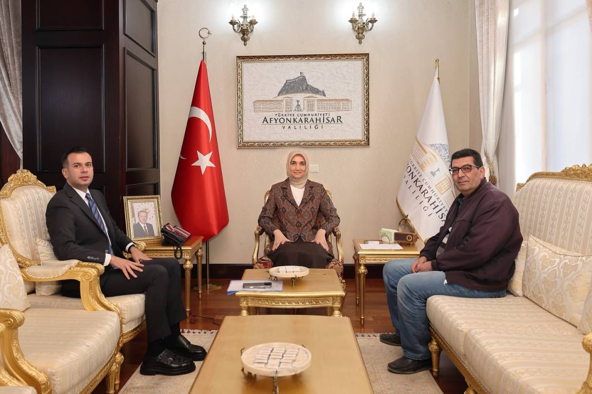 Görüşmede Sinanpaşa Kaymakamı Emrah Aslan da hazır bulundu.