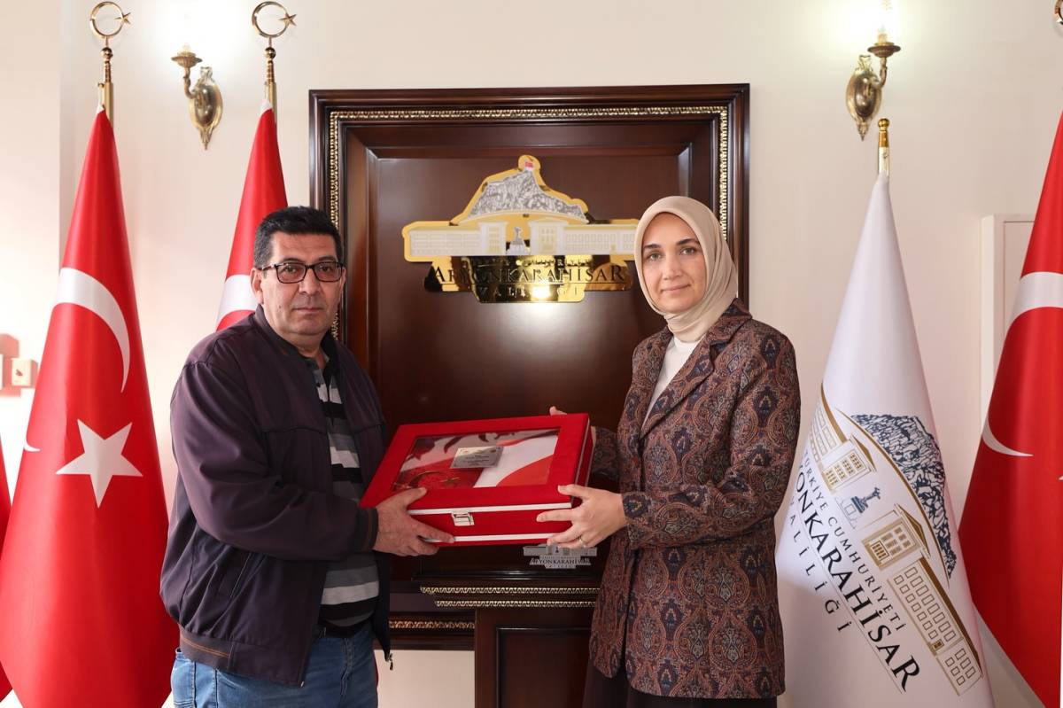 Afyonkarahisar Valisi Doç. Dr. Kübra Güran Yiğitbaşı, görev başında şehit olan Orman Şehidi Mustafa Gürpınar’ın kıymetli babası Halil Gürpınar’ı makamında ağırladı.