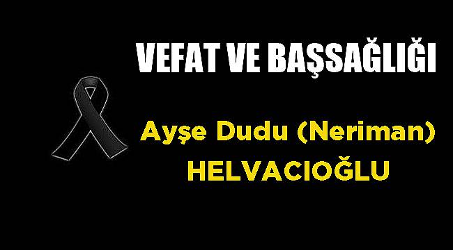 Dumlupınar Mahallesinden, merhum Hacı Mehmet Uğur ve Fatma Uğur’un kızı, merhum Osman Helvacıoğlu’nun eşi, Selahattin Palalı, Mustafa Alpata, merhum Vural Öziri ve Mehmet Necip Algan’ın kayınvalidesi, Rabia, Rana, Hatice, Belkıs ve Ayten’in annesi, Murat, Mehmet, Şöhret, Serhat, Levent, Bülent, Arda, Didem, ve İrem’in anneannesi Ayşe Dudu (Neriman) Helvacıoğlu vefat etmiştir.