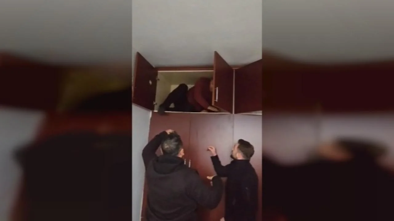 Belirlenen adrese operasyon düzenleyen ekipler, evde yaptıkları aramada dikkat çekici bir manzarayla karşılaştı. Yatak odasında inceleme yapan polis, gardırobun üst kısmında battaniyeye sarılmış halde saklanan Mehmet A.’yı buldu. Gözaltına alınan zanlı, ifadesi alınmak üzere emniyete götürüldü.