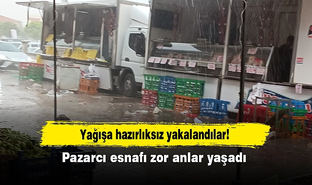 Afyonkarahisar’da kurulan semt pazarında sağanak yağışa hazırlıksız yakalanan pazarcı esnafı zor anlar yaşadı.