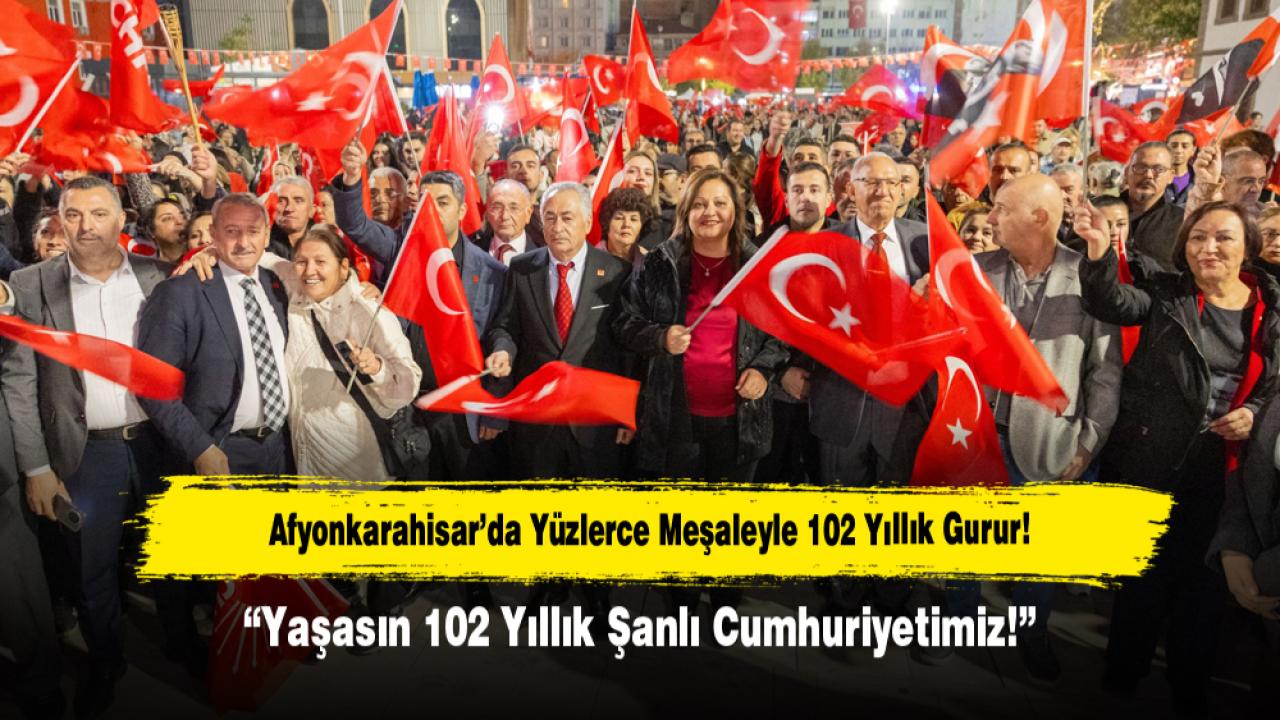 Zafer Meydanı'nda toplanan vatandaşlara hitaben bir konuşma yapan Belediye Başkanı Burcu Köksal, “Burası Afyonkarahisar! Burası, Cumhuriyetimizin destanının yazıldığı, bağımsızlık ateşinin harlandığı topraklar! Bu şehir, taşında, toprağında, insanının ruhunda zaferin, onurun ve Cumhuriyet’in izini taşır! 102 yıl önce Büyük Önderimiz Gazi Mustafa Kemal Atatürk ve silah arkadaşları, milletin iradesine dayanan bir yönetimi kurarken, bizlere onurlu bir yaşam biçimi, özgür bir gelecek, eşit bir toplum ideali bıraktılar. İşte o yüzden, biz Cumhuriyet çocukları, bu emanete sonsuza dek sahip çıkacağız!” dedi.