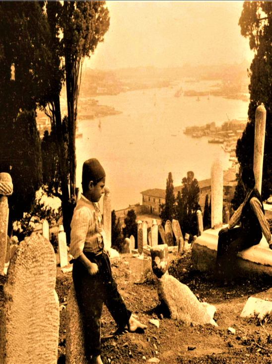 Yetim Bir Çocuk, İstanbul Boğazı Kıyısındaki Kabristanda Babasının Mezarı Başında Dua Ederken.
