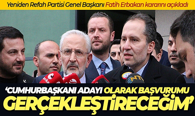 Herhangi bir ittifaka dahil olmadan seçimlere girme kararı aldıklarının altını çizen Erbakan, “Yine 14 Mayıs'ta yapılacak olan Cumhurbaşkanlığı Seçimi'nde de Yeniden Refah Partimizin cumhurbaşkanı adayı olarak bendeniz Yüksek Seçim Kurulumuza başvurumu yaptım. İnşallah ülkemiz için, milletimiz için ve bütün insanlık için bu adımlarımızın hayırlı olmasını diliyorum” dedi.