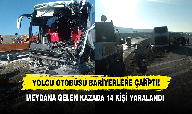 Kontrolden çıkan yolcu otobüsünün bariyerlere çarpması sonucu meydana gelen trafik kazasında 14 kişi yaralandı.