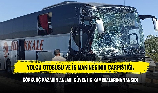 Yolcu Otobüsü Ve İş Makinesinin Çarpıştığı, Korkunç Kazanın Anları Güvenlik Kameralarına Yansıdı