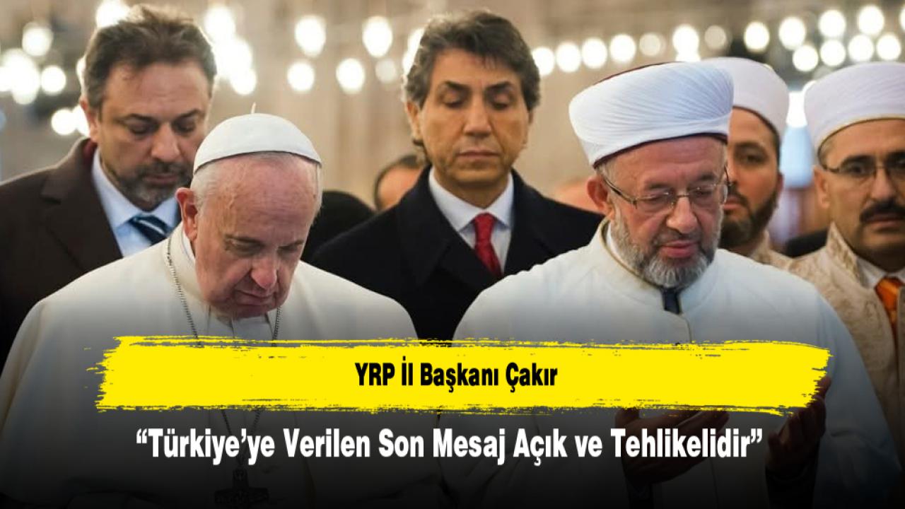 YRP İl Başkanı Fehmi Güray Çakır, terör örgütü elebaşına yönelik temaslar ve Papa’nın Türkiye ziyareti üzerinden verilen mesajların milli güvenliği tehdit ettiğini belirterek açıklamalarda bulundu
