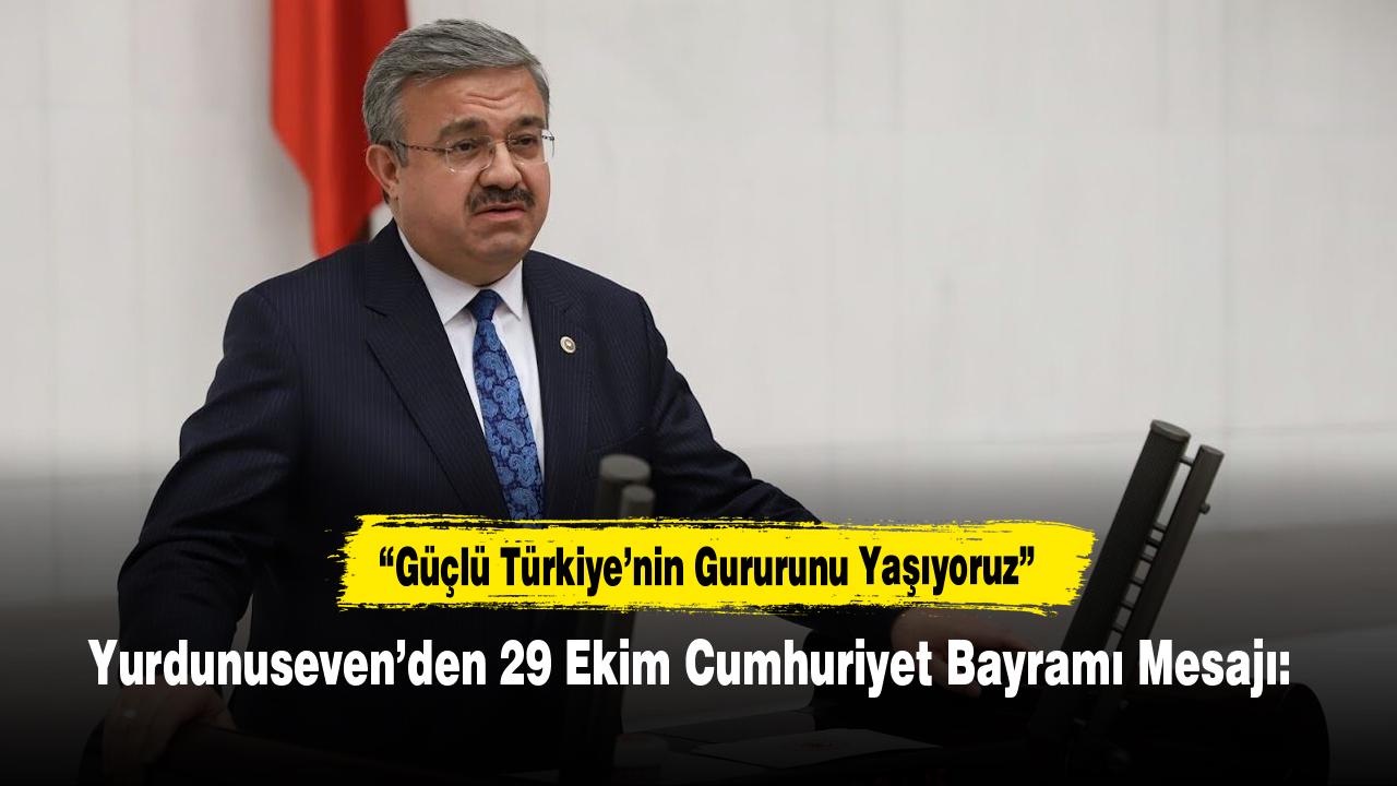 Yurdunuseven, Cumhuriyetin ilanının 102. yıl dönümünü büyük bir gurur ve heyecanla kutladıklarını ifade ederek, “Cumhuriyetimizin 102. yılına ulaştığımız bugün, milletimizin azim, inanç ve kararlılıkla inşa ettiği güçlü Türkiye’nin gururunu yaşıyoruz.” dedi.